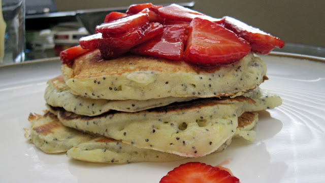 Serve with sliced strawberries coated with sugar. (We chop up about a cup and add about 2 tsp sugar it comes out great).